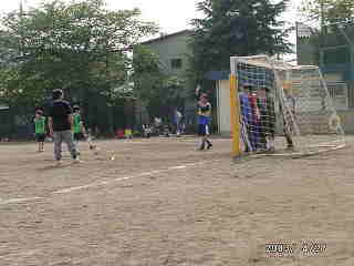 ドリブルの練習も済み、続いては、高学年、中・低学年、父親・コーチ、母親の4グループをそれぞれ3チームずつに分けてのミニサッカーの時間です。高学年は父親やコーチとの対戦、中・低学年は母親との対戦となります。 それぞれ20分1本で2試合ずつ行いましたが、どの試合も白熱したゲーム展開で、点の取り合いとなりました。子供たちから「大人げない」などのプレッシャーをかけられながらも、父親・母親ともに我を忘れてついつい真剣なプレーとなったようです。 日頃の子供の試合には、声での参加に徹しているお母さん方も、20分という時間の長さと動き回ることの大変さを実感したようでしたが、例年になく攻撃的に試合を進めていました。 4勝・1分・1敗という成績は昨年の2勝・4敗に比して格段の実力アップ(?)を感じさせ、この調子で行けば市内大会の父母交流試合にも十分通用することが期待されます。 一方、父親・コーチチームの方は、昨年の3勝・3分に対し、今年は1勝・1分・4敗と惨憺たる成績で、強豪のBJ高学年が相手とは言え、今後のトレーニング強化の必要性が一層高まりました。 |