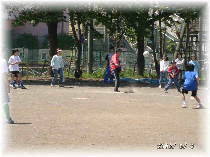 少し早めのお昼を陽射しが暖かい屋外で食べました。この頃、体育館では6年生のお母さん方が売り子となってサッカー用品などのバザーも行われました。