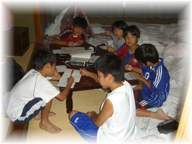 感想文の仕上げをしたり、爆睡中だったりと各部屋の様子は様々。