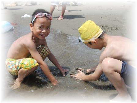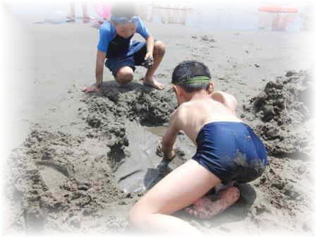風が強いため、波の影響が少ない、熱海のサンビーチに向かいました。