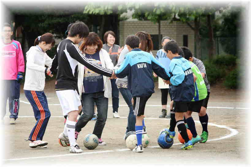 | 毎年恒例の「春の親子交流会」です。 BJのメンバーとその親御さんや兄弟姉妹など170人余りがグラウンドに集まって、スポーツに汗を流し、相互の交流を深めました。 さわやかな5月の陽気の中、8チームに分かれて、「チーム対抗ミニ運動会」で一日楽しく交流を図ることができました。 |