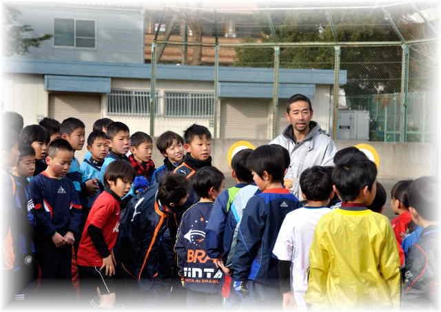 | まずは、1年生! コーチに、蹴り方を教わります。 |