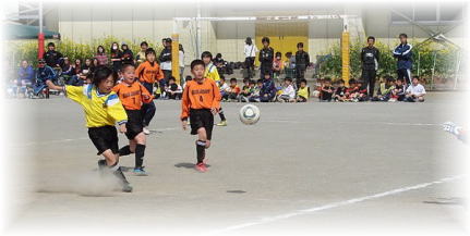 オープニングは「5年生」対「4年生」の対戦で、青ビブスの「4年生」チームが2対1の勝利を飾りました。